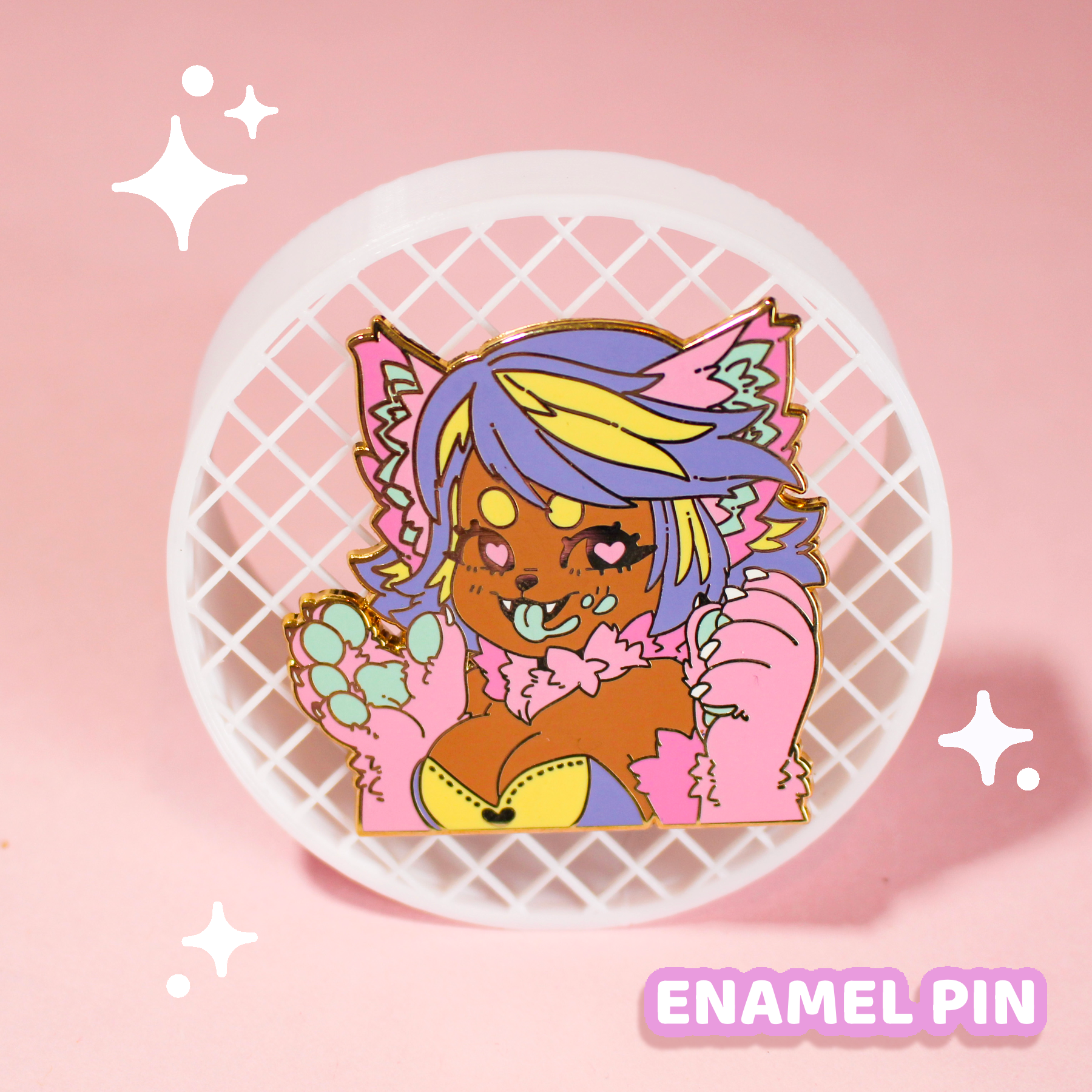 Mejora tu estilo con este pin de esmalte duro, con baño de metal dorado y dulces tonos pastel. Agrega un toque de ternura a tu look: ¡no te puedes equivocar! (Además, ¡es un verdadero pin de exhibición!)