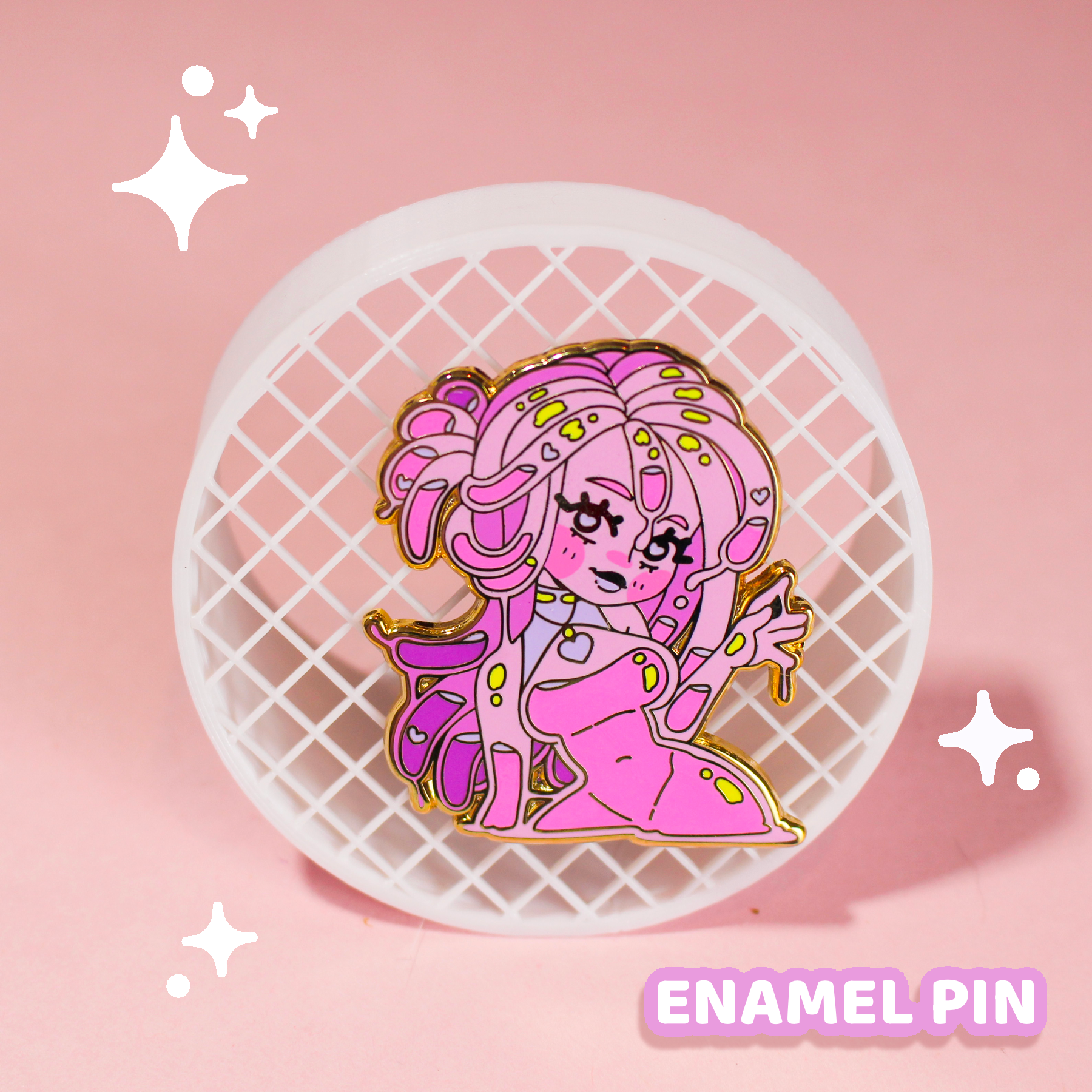 Mejora tu estilo con este pin de esmalte duro, con baño de metal dorado y dulces tonos pastel. Agrega un toque de ternura a tu look: ¡no te puedes equivocar! (Además, ¡es un verdadero pin de exhibición!)